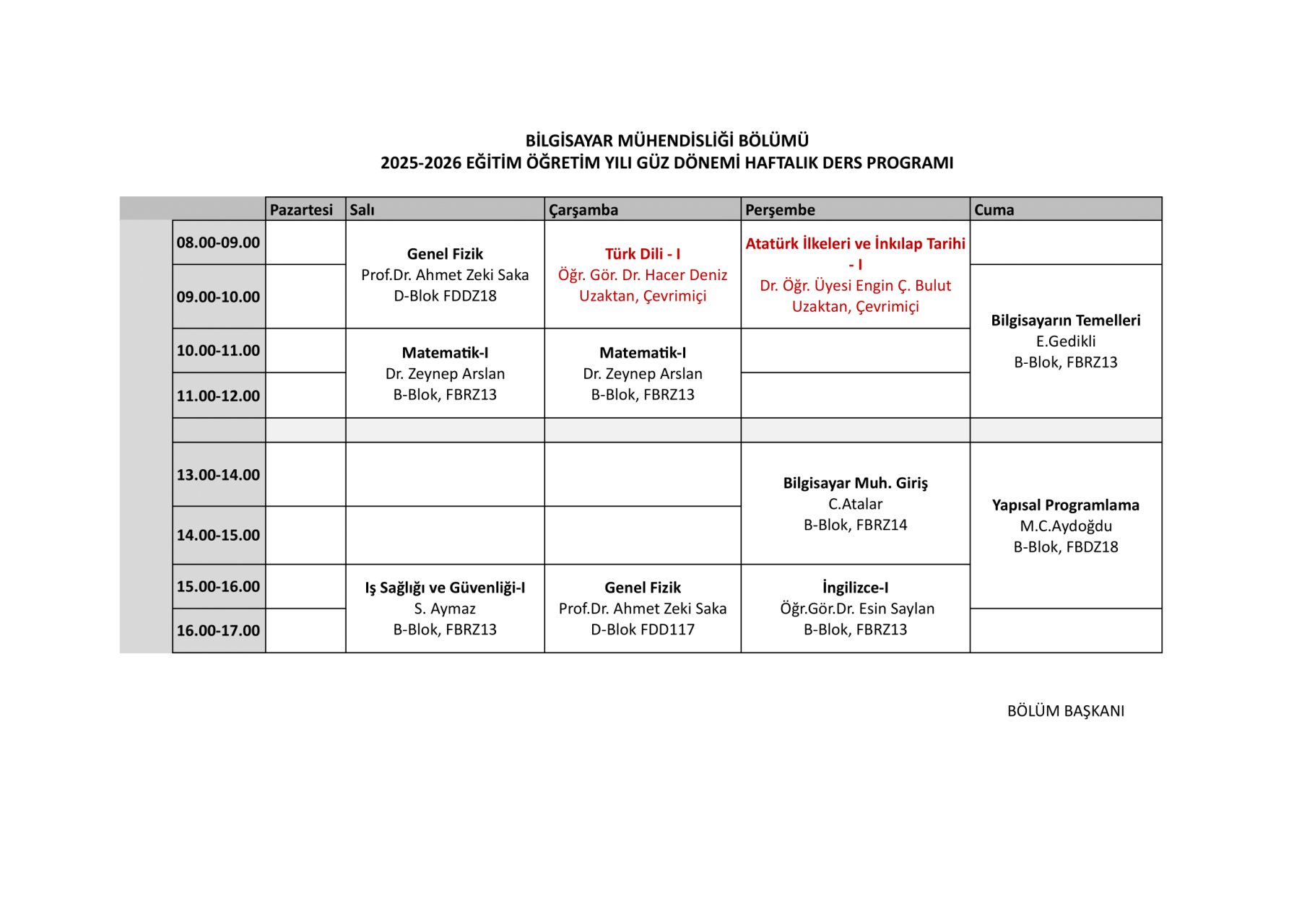 Bilgisayar Mühendisliği Bölümü