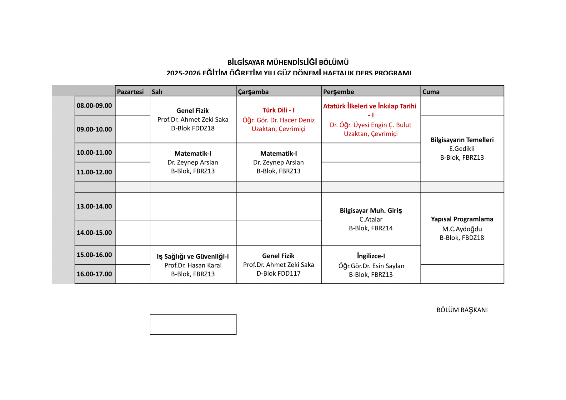 Ders Programı